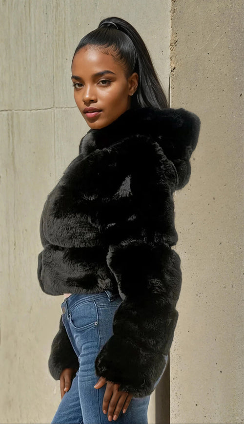 Cuddleme Faux Black Fur Coat