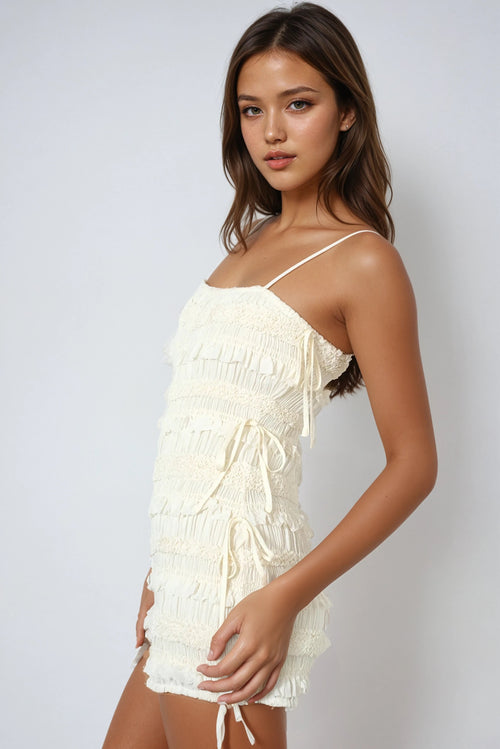 The Ruffle & Rise Laced Up Tank Top & Short Ruffle Shorts Outfit is made for those days you want to feel effortlessly cute and comfy. This two-piece set features a mini ruffle tiered tank top with a statement lace-up back and open-back detail. The short ruffle shorts match with flowy flair and stretchy ease—perfect for soaking up sunshine or hitting the streets with confidence. Great for brunch, day parties, beach trips, and summer strolls.
