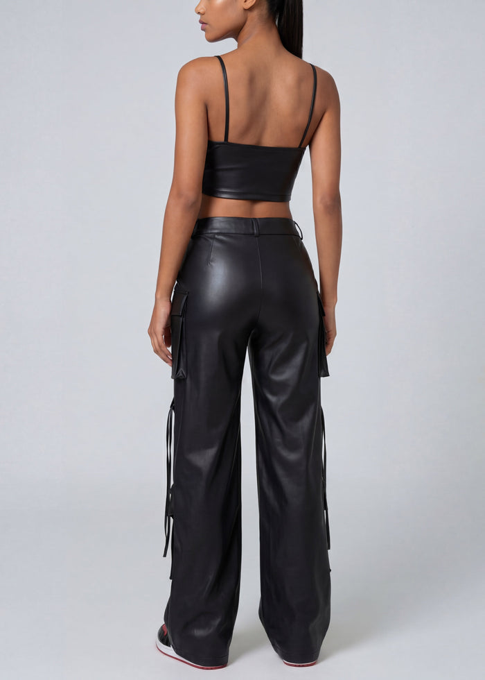 Pressure Proof PU Leather Wide Leg Cargo Pants