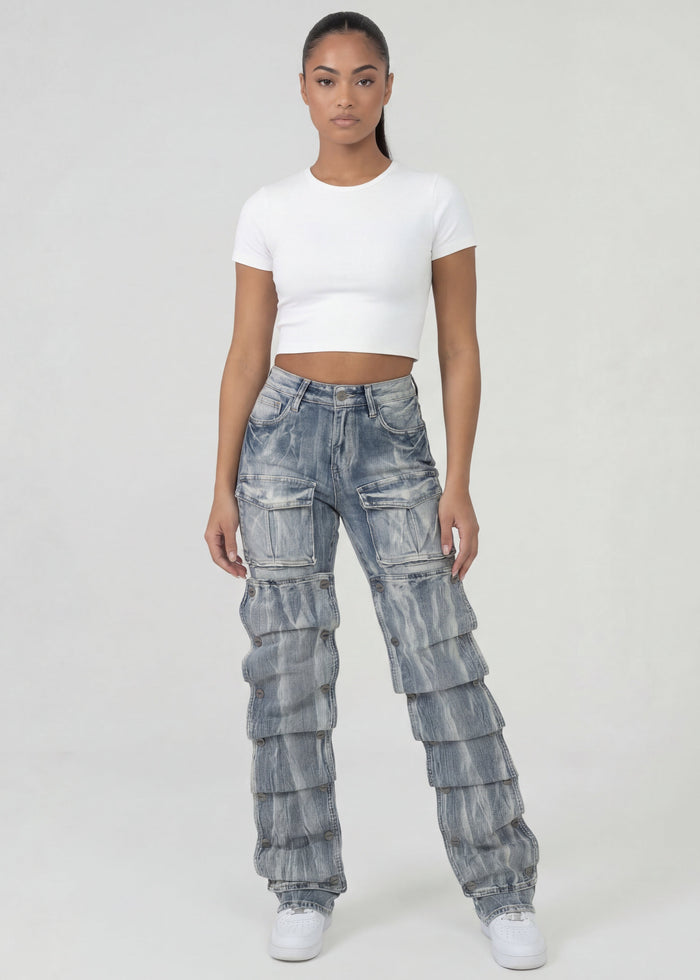 Designed with a structured high-waist fit and bootcut silhouette, these jeans bring confidence, balance, and timeless edge to your wardrobe. What makes them truly unique is the detachable layered design, allowing you to remix your look whenever you want.