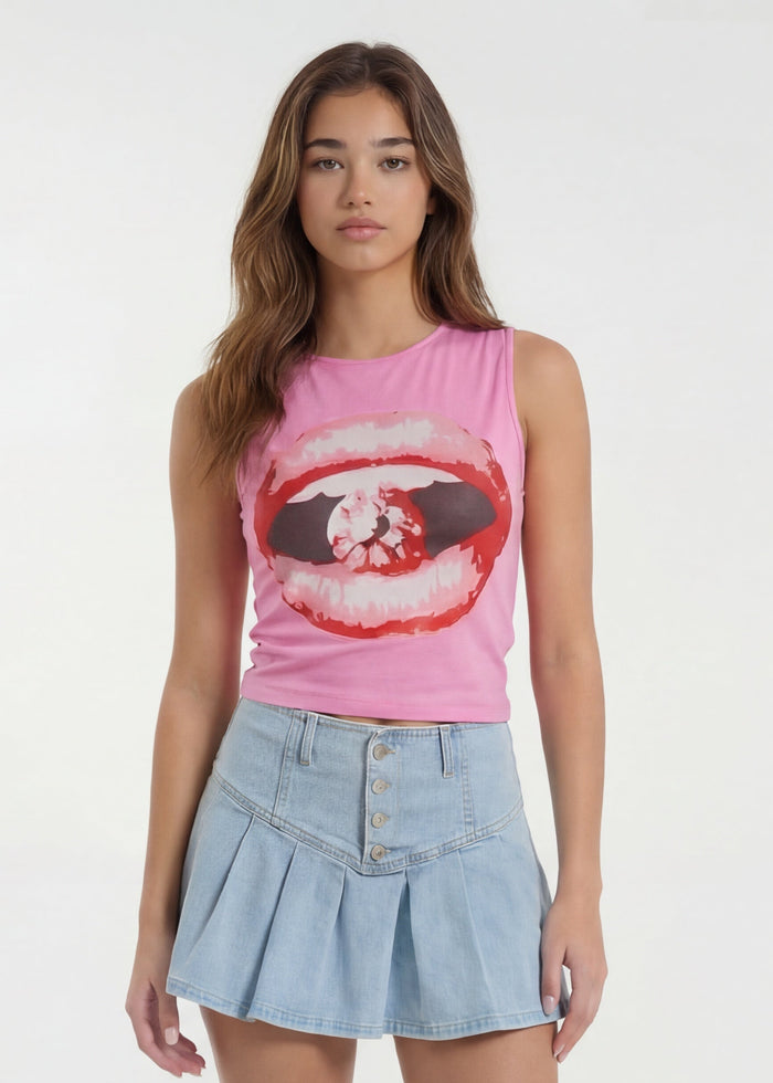 Say it. Wear it. Own it. The Speak Bold Energy Tank is made for the girl who doesn’t shrink her voice or her presence. With a sleek cropped fit and a confident high neckline, this tank delivers clean lines with bold attitude. The raspberry lip screen print adds a playful yet powerful statement, turning a simple top into an instant conversation starter.